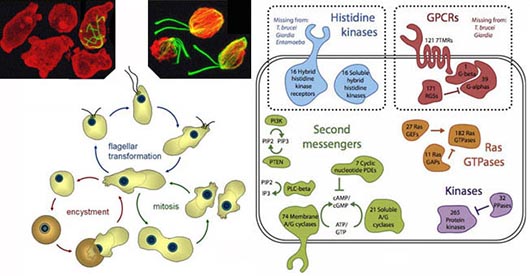 Fig 6c: Evolutionary tree of B-family DNA polymerase showing relationship of pandoravirus to other viruses and eucaryotes. Inset is shown pandoraviruses invading acanthamoeba (Philippe et al).